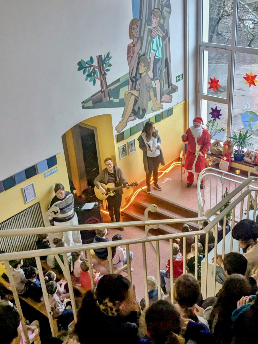 Mit rotem Mantel und weißem Bart kam er in die Schule und sorgte für strahlende Gesichter.